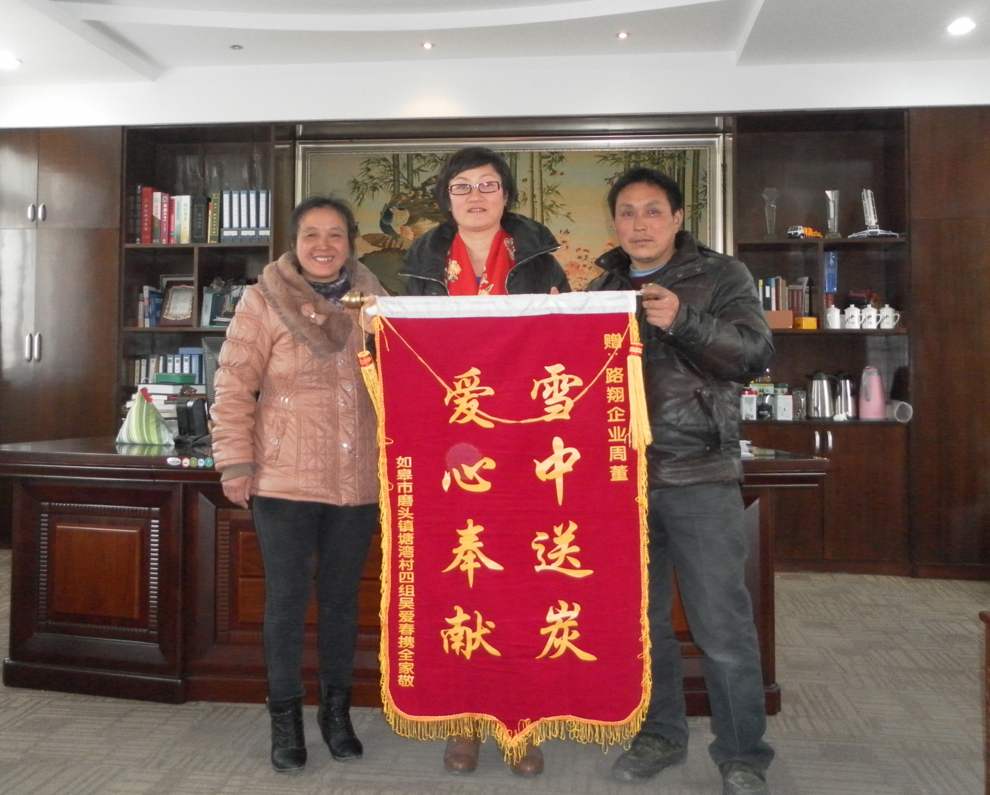 2013年2月20日,我們江蘇路翔交通工程有限公司突然來了兩名不速之客,并送來了一面“雪中送炭,愛心奉獻”的錦旗。原來是去年夏天,家住磨頭鎮新塘村的吳愛春同學喜錄重慶大學,但因父親患腦結核等多種疾病住院花費巨額醫療費用,其上學的學費都成了問題,路翔公司周紅梅董事長從磨頭鎮相關人員處聽到這個消息后,隨即表示學費由其全額捐助。吳愛春的父親身體康復后,一定要到公司當面感謝周紅梅董事長,于是便有了開頭的那一幕。公司員工也只才知道周總不僅關愛公司內部員工,在社會上也經常扶貧濟困、捐資助學,只不過她本人從來不肯提起,只是淡淡一笑:“我只是做了一件力所能及的事”。 |