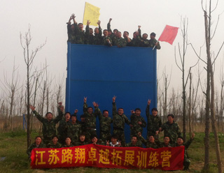 體驗式戶外拓展訓練是路翔企業新人入司后必須參加的培訓項目之一。3月30日,路翔企業近三年新入司人員及公司總部相關人員一行35人,帶著激情和期待,在副總經理楊文彬的帶領下,相聚如皋港藥用植物園基地,參加了為期一天團隊拓展培訓。 早晨7:00,我們的專車迎著朝陽準時從公司出發。由于此次訓練營的成員來自不同的分公司,有的平時工作接觸很少甚至沒有接觸,楊總首先向大家介紹了這次訓練營的人員情況,這次訓練營是公司組織的第5次拓展訓練營,也是公司有史以來人員組成最年輕、學歷層次最高的一次,希望大家能夠全身心投入、挑戰自我、突破自我。接著,大家爭先恐后地依次介紹了自己的名字、部門、崗位、愛好、特長等,氣氛非常熱烈,短短的40分鐘車程就在這樣輕松愉快的氛圍中不知不覺的過去了。 上午8:00,我們到達了這次訓練的目的地——如皋港藥用植物園基地。剛放下行囊,大家就馬不停蹄地換上統一的迷彩服,然后在教練的組織下開始了“破冰”行動,有趣的熱身運動后,開始分小組、起隊名、選隊長、設計隊徽、隊呼、隊歌。不到10分種,當“飛翔隊”、“拼搏隊”分別以昂揚的斗志舉著隊旗、呼著隊呼、唱著隊歌、以獨特的造型展現著各自風采的時候,每一個隊員的臉上都洋溢著不一樣的光彩,似乎對今天行程有了一種別樣的期待。 首先,進行的是“信任背摔”,當每一個伙伴站在1.8米的跳臺邊緣直直向后摔下的時候,當每一個伙伴被同伴們穩穩地接住的時候,不時爆發出一陣陣的吹呼聲。正如伙伴們所說:“接人是一種責任,被人接是一種幸!,“我相信我的伙伴們、也相信我自己”。