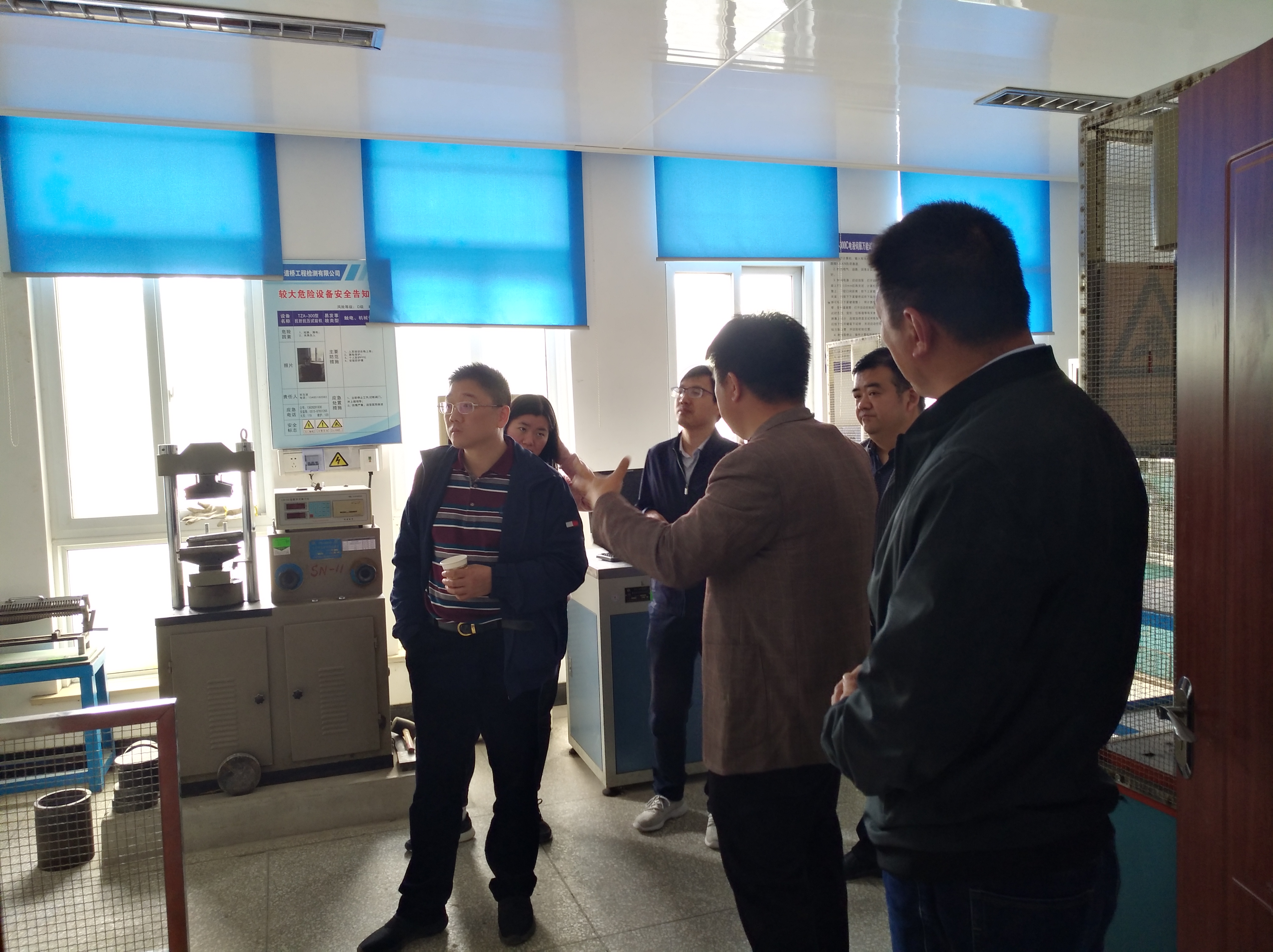 2019年4月24日上午,如皋市交通質監所一行四人來到我們南通道橋工程檢測有限公司,對試驗檢測工作進行檢查和指導。首先,檢查組一行參觀并檢查了公司試驗及辦公環境、儀器設備配置、管理、技術人員配備、資質等情況。檢測公司試驗室主任宋玉波一路隨行,詳細講解了各試驗檢測項目所用儀器的使用方法及注意事項,并安排相關專業試驗檢測人員進行了同步操作。