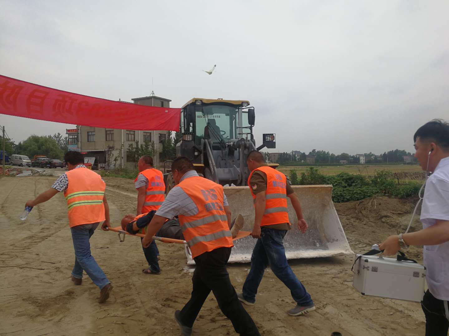 本次演練模擬情景是高溫環(huán)境下一名工人黃井余在施工現(xiàn)場(chǎng)清理路基樹根時(shí),出現(xiàn)頭暈、口渴、面色潮紅、大量出汗、四肢濕冷、面色蒼白、血壓下降、脈搏增快,發(fā)生中暑現(xiàn)象,現(xiàn)場(chǎng)同組作業(yè)人員張忠澤、秦益華在隊(duì)長(zhǎng)薛鐵泉的帶領(lǐng)下立即進(jìn)行了現(xiàn)場(chǎng)處置,迅速把中暑人員撤離高溫環(huán)境,扶到陰涼通風(fēng)的地方休息;給中暑人員黃井余飲用一些含鹽分的清涼飲料,在額部、顳部涂抹風(fēng)油精,并服用人丹、藿香正氣水等中藥并在第一時(shí)間向應(yīng)急救援總指揮沈霞明進(jìn)行了匯報(bào),總指揮立即啟動(dòng)項(xiàng)目應(yīng)急救援預(yù)案。