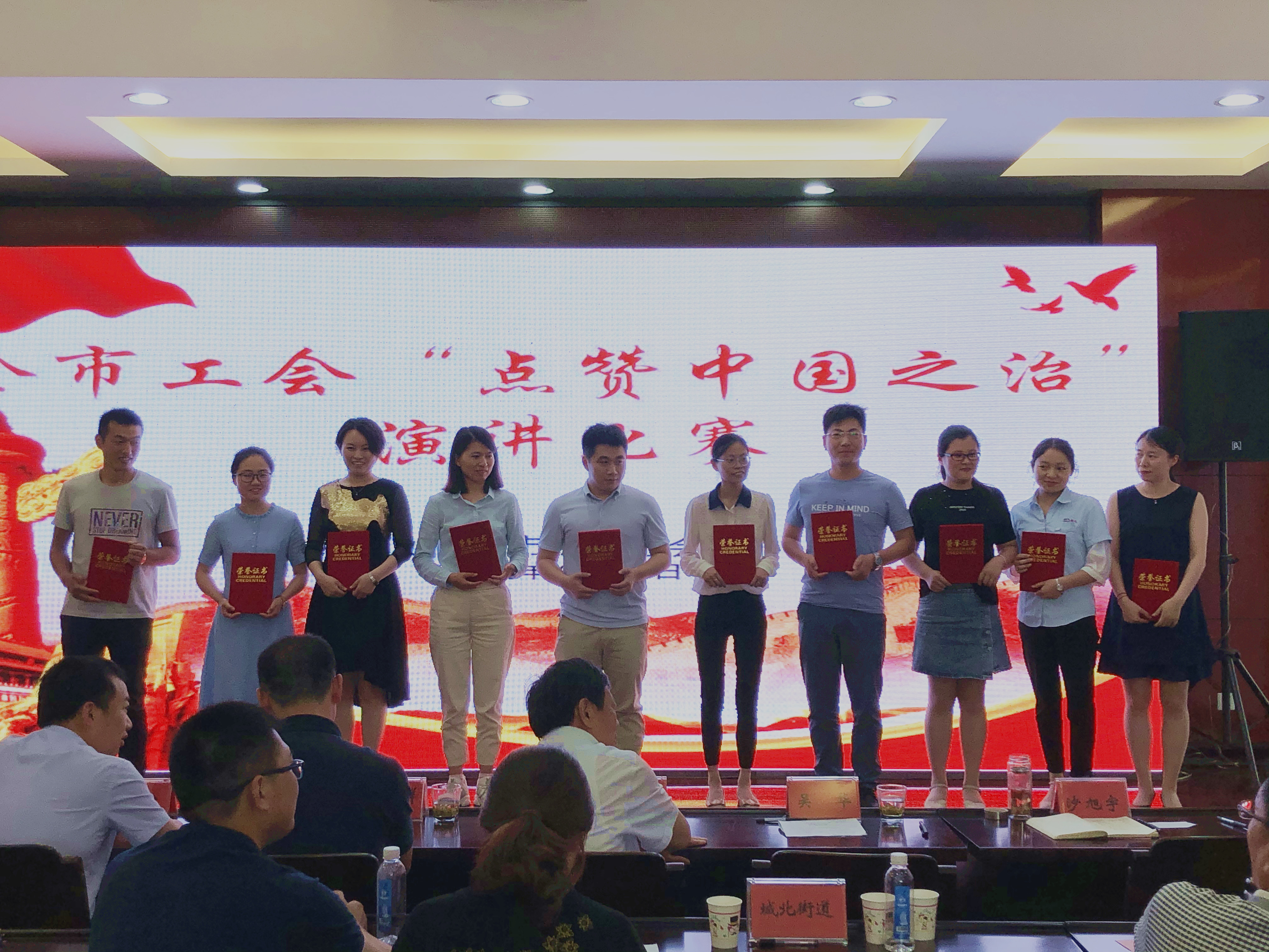 6月9日下午2時許,由如皋市總工會組織舉辦“點贊中國之治” 主題演講比賽在市總工會五樓會議室隆重舉辦。全市各條戰線及鄉鎮的工會主席和社會化工作者近60人與會,各條塊推送的26名選手參加演講比賽,我公司的優秀技術骨干繆丁偉由磨頭鎮推送參加比賽。 |