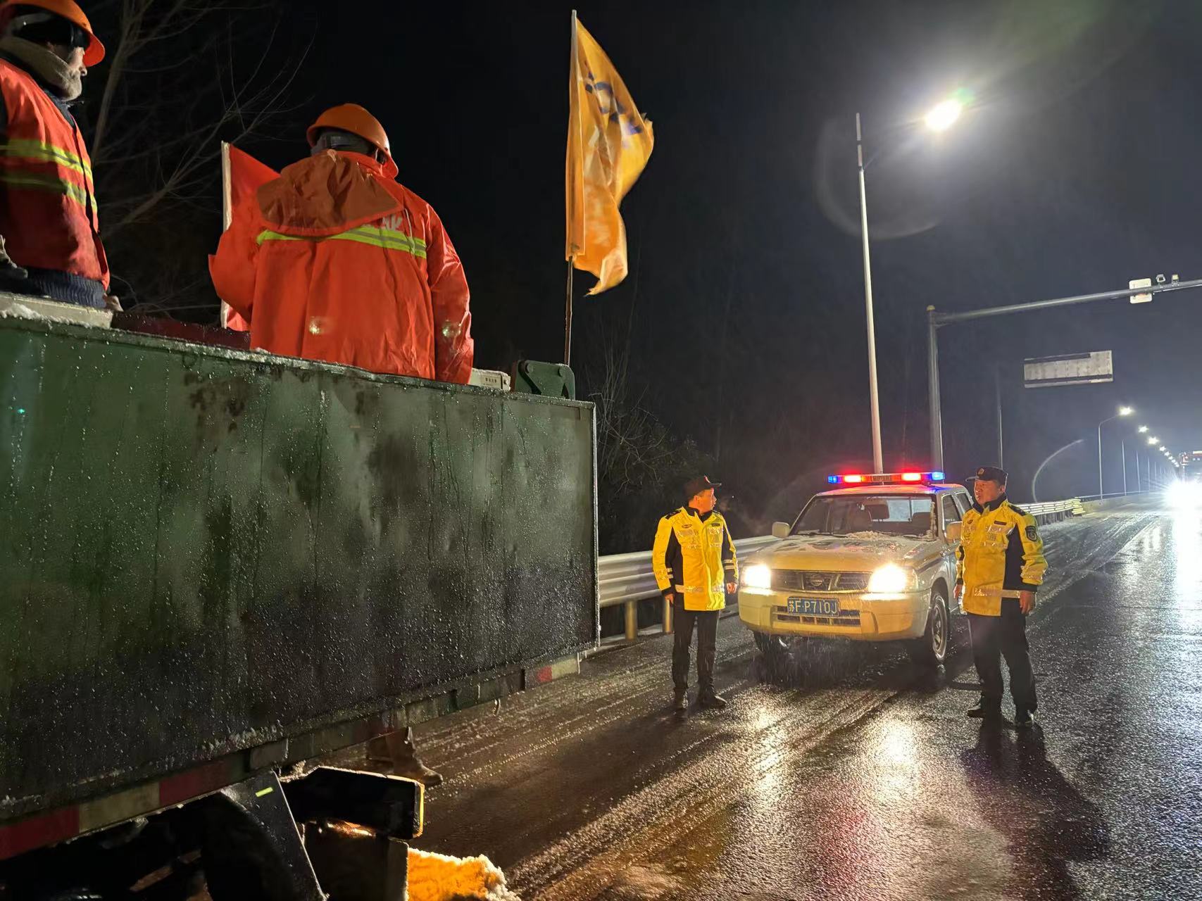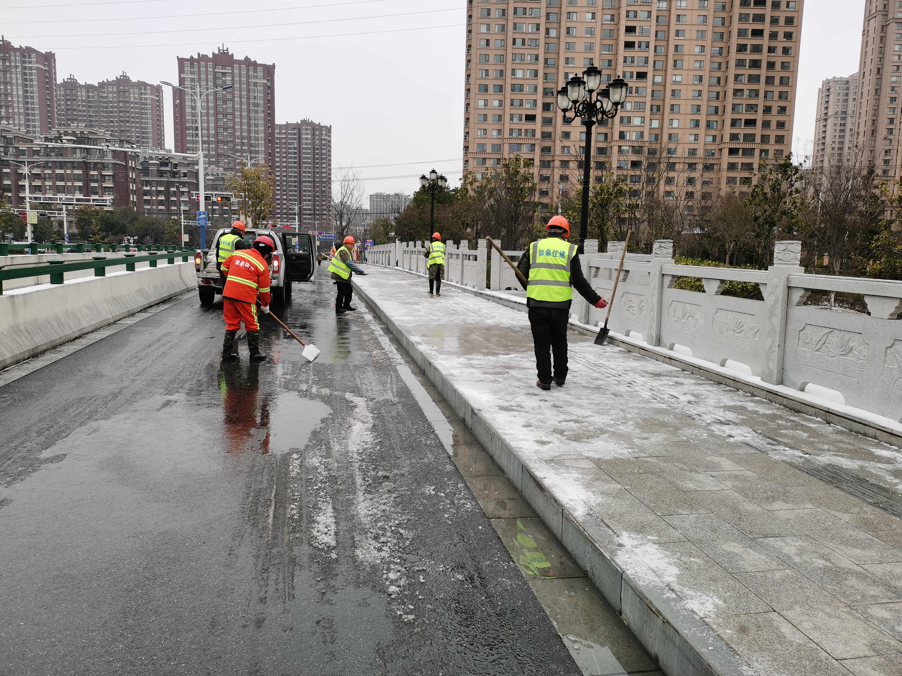 22日晚上20時,市政分公司開始在環(huán)東大橋、海陽大橋、環(huán)西大橋等主要的交通節(jié)點撒布融雪劑,同時安排人員對北開和主城區(qū)路面進行巡查,對結(jié)冰嚴重的路面,派人進行清掃,以保證人民和車輛的出行安全。截止至23日上午9時,已累計出動應急人員50人次,車輛7輛次,撒布融雪劑近8余噸。